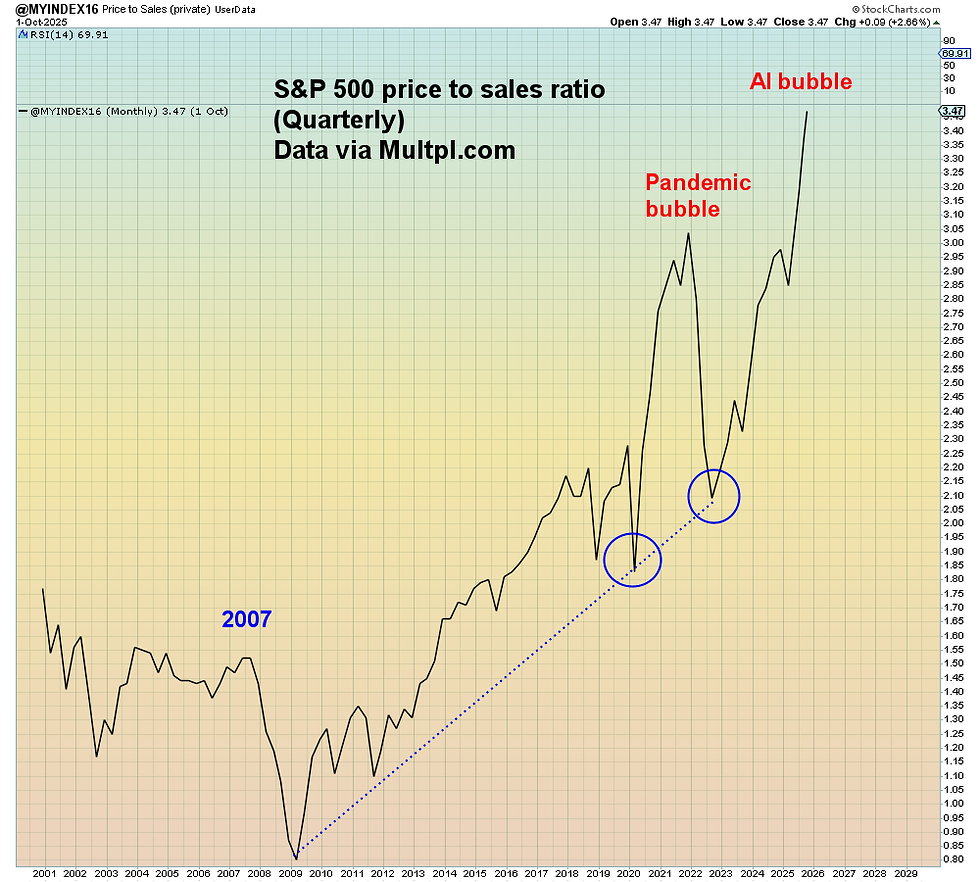 The "good news" is that I believe that the systemic meltdown that is now in train will "clarify" many of the competing claims being made on both sides of the wholly incompetent political spectrum. I think we will soon finally get everyone on the same page as to what can no longer be ignored - That what has been conflated as economic "exceptionalism" is merely continual economic degradation to the benefit of ever fewer Tech oligarchs now in existential AI over-drive. The cyclical inflation that is weighing on the middle class is REAL. The secular wage and jobs deflation that is accelerating under AI is also real. If we compare the last Tech bubble to this one - both of which were end of cycle events - then what we realize is that consumer sentiment THEN was at a 30 year high, whereas now it's at a 50 year low. Are we to believe that a bursting of the AI bubble will cause sentiment to increase? Of course not. It will plumb new formerly unimaginable lows.